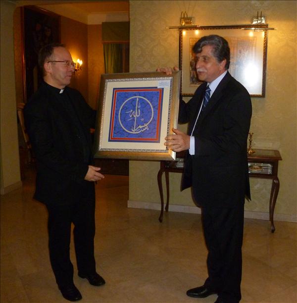 Haziran 2012’de Galatasaray, Bahçeşehir ve 29 Mayıs Üniversiteleriyle temaslarda bulunan Papalık Gregoryana Üniversitesi Rektörü Prof. François-Xavier Dumortier başkanlığındaki 5 öğretim üyesi 17 Aralık 2012 tarihinde Büyükelçiliğimizi ziyaret etmiştir. Türkiye ziyaretleri sırasında tanıdıkları ebru sanatçısı İlkay Şamlı’nın onlar için hazırladığı eserler bu vesileyle kendilerine takdim edilmiştir.