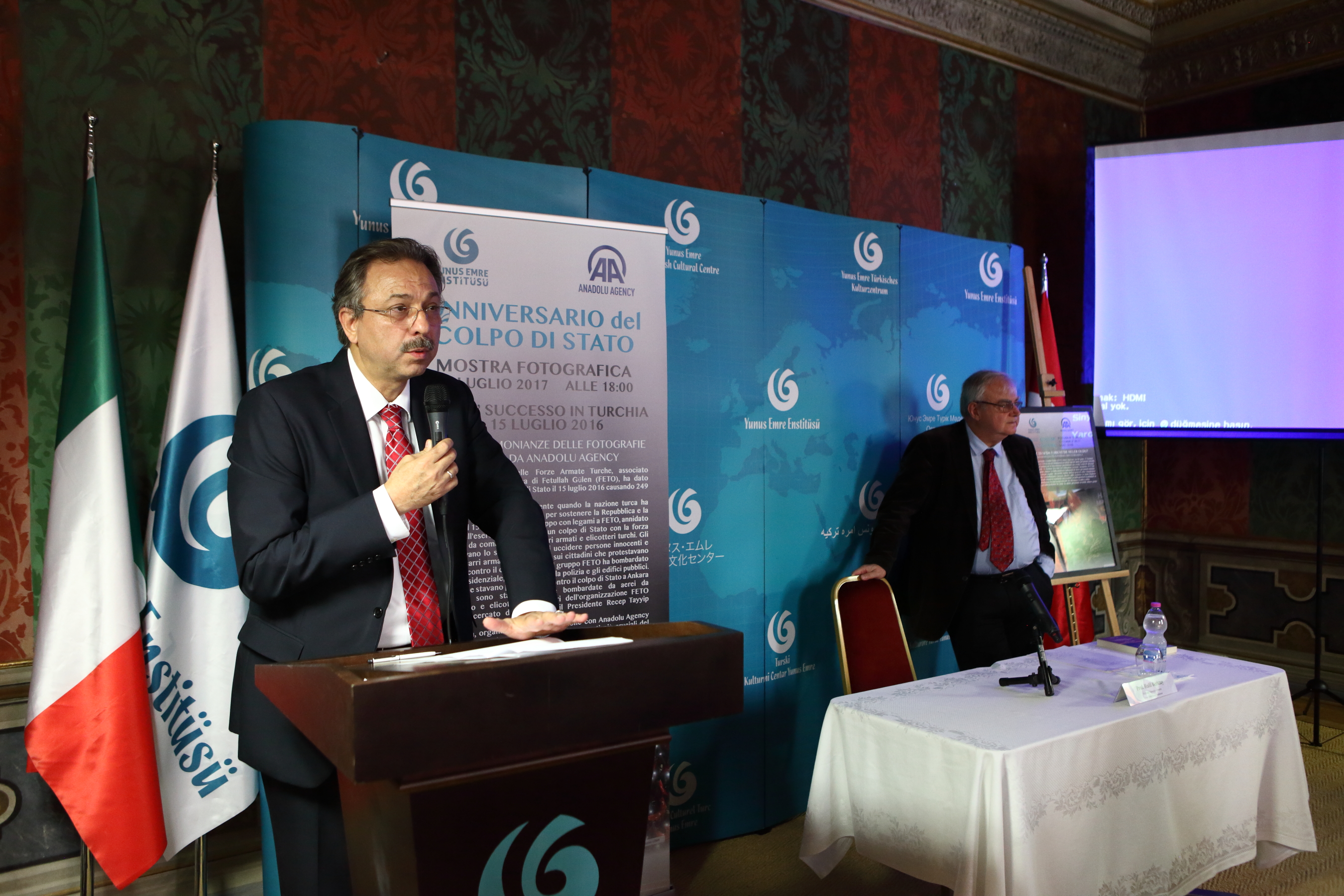 15 Temmuz Demokrasi ve Milli Birlik Günümüzü anma etkinlikleri çerçevesinde, Büyükelçiliğimizce Yunus Emre Enstitüsü Roma Kültür Merkezi’nde 12 Temmuz 2017 tarihinde Prof. Dr. Halil Berktay’ın konuşmacı olarak katıldığı “July 15 Failed Coup Attempt in Turkey: Before And Aftermath” başlıklı konferans düzenlenmiş ve akabinde davetlilere resepsiyon verilmiştir.
